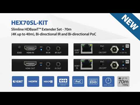 The HEX70SL-KIT 4K HDBaseT™ extender set offers market leading features in a slimline chassis.
