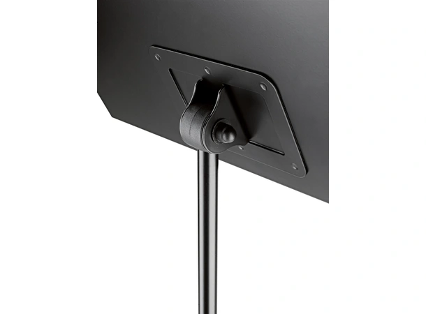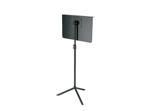 Stabelbart orkester notestativ med moderne utseende. Dette notestativet er spesielt designet for steder som skoler, konsertsaler, auditorier osv. Det er helt ideelt når flere orkester notestativer må settes opp og fjernes raskt, eller når lagringsplassen er begrenset. Minimum avstand mellom stabelte stativer er kun 70 mm. Høydejustering er enkelt ved hjelp av klemmeleddet. Spenningen på leddet kan justeres etter dine behov. Høyden kan kontinuerlig justeres mellom 760 og 1300 mm.