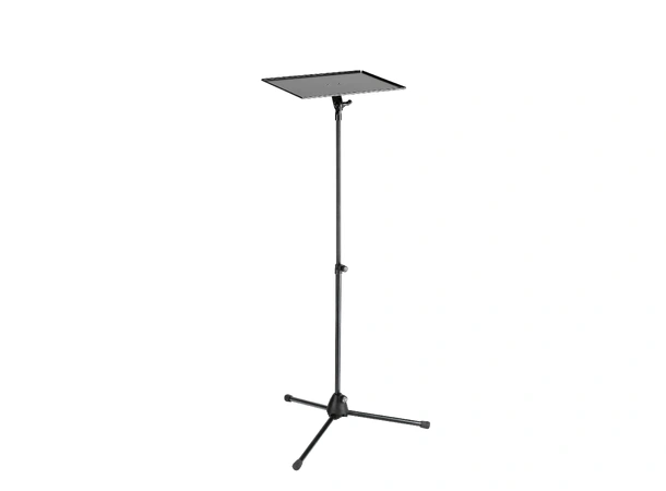 The convenient and comfortably sized laptop rest of 400 x 290 mm is large enough to hold notebooks, laptops or similar products in a range of sizes. The V-shaped connector means the laptop rest can be quickly detached for transport. Its angle can also be altered to any position with the clamping lever. The stable 3-legged base section folds compactly. – Load-bearing capacity: 5 kg. Weight: 3.2 kg, Laptop rest: 400 x 290 mm, H: 780/1290 mm.