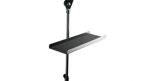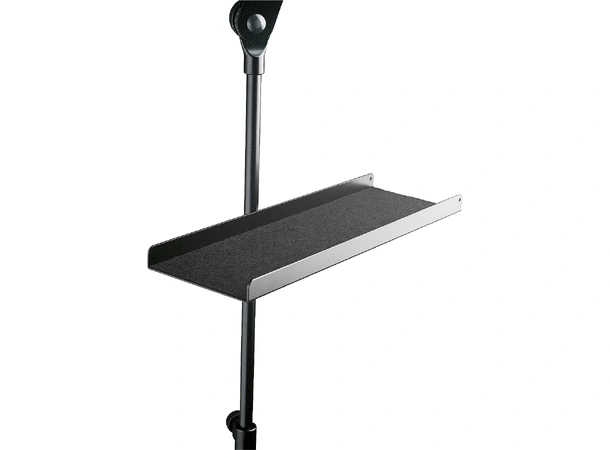 A practical music and instrument tray made of aluminum with felt inner-lining. Attaches to K&M stands with tubing diameter up to 30 mm. – Weight: 0,48 kg, Size: 390 x 125 mm.