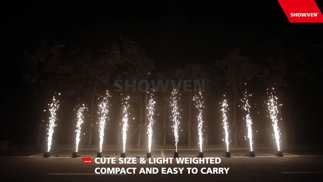 Med sin integrerte trådløse og anti-kollisjonsteknologi er denne gnistmaskinen designet for å vare over tid, den er enkel å bruke, lett og kompakt. En flyveske er tilgjengelig som et tilleggsalternativ. Dette modellen selges også i sett med 2, 4 og 6 maskiner med DMX-kabel og flyveske inkludert.
