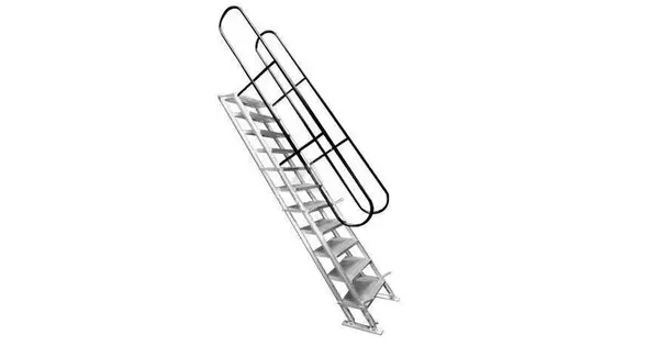 Basic element with 6 steps of the adjustable stair. The upper step aligns with the stage floor. This basic element is connected to the stage by means of a profile that is bolted to the stage with a T-head bolt (M10x40mm) that is placed in the side of the StageDex profile